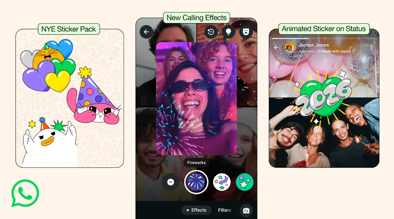 O WhatsApp ganhou algumas novidades especiais para celebrar o Ano Novo, trazendo novas figurinhas, efeitos nas ligações de vídeos e novas reações. A atualização foi divulgada pelo blog do mensageiro nessa segunda-feira (29). O update